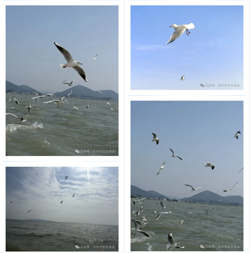 春日太湖碧波荡漾、风光旖旎,处处透着盎然生机。参与活动的商会家人齐聚码头,乘游船向着漫山岛出发,泛舟湖面迎着柔风,远眺太湖无边盛景,途中偶遇成群红嘴鸥嬉戏相伴,成为春日里别样的治愈风景。大家纷纷驻足打卡,定格美好瞬间,欢声笑语随湖水荡漾,卸下平日忙碌,尽享湖光山色间的悠然惬意。