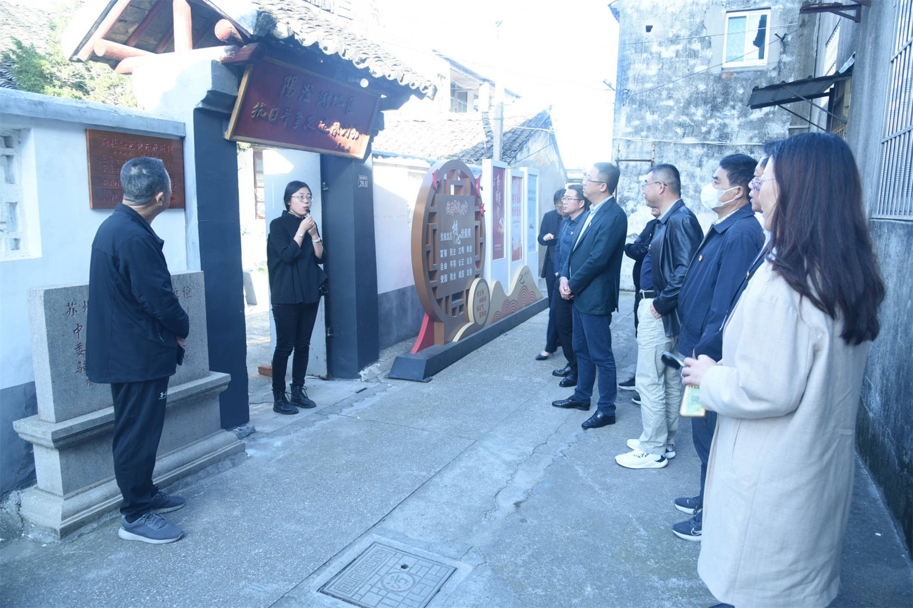 活动之前,大家首先参观了阳澄湖地区抗日斗争史迹陈列馆。馆内所陈列的历史照片、资料、图表、实物,真实地反映抗日战争期间阳澄湖地区军民在中国共产党领导下与日本侵略者、汪伪汉奸及以胡肇汉为代表的反动顽固势力进行不屈不挠斗争的历程。在这里,大家通过一幅幅图片和一件件实物以及讲解员的生动讲解,接受了一次生动的爱国主义教育和党史教育。
