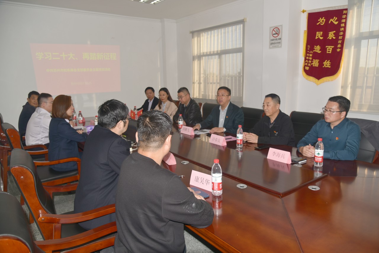 10月25日下午,苏州市如东商会党支部“学习二十大,再踏新征程”主题党日活动暨苏州市如东商会党支部和苏州农商银行高新支行党支部党建结对共建仪式在阳澄湖地区抗日斗争史迹陈列馆会议室举办。