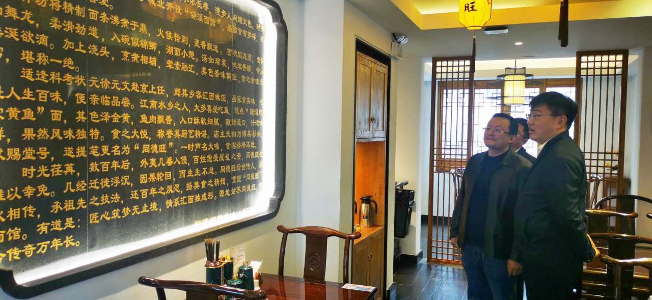 座谈结束后,参访团一行品尝了同德兴面馆招牌套餐蟹粉虾仁面、醋溜脆皮黄鱼面。精美的摆盘、地道的口感、道不尽的委婉滋味,让家乡领导充分体味到了寻味隐居苏州老城的清绮漫调。