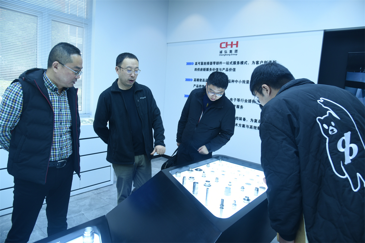 座谈结束后,缪锐镇长一行参观了诚弘机械公司的产品展示区。